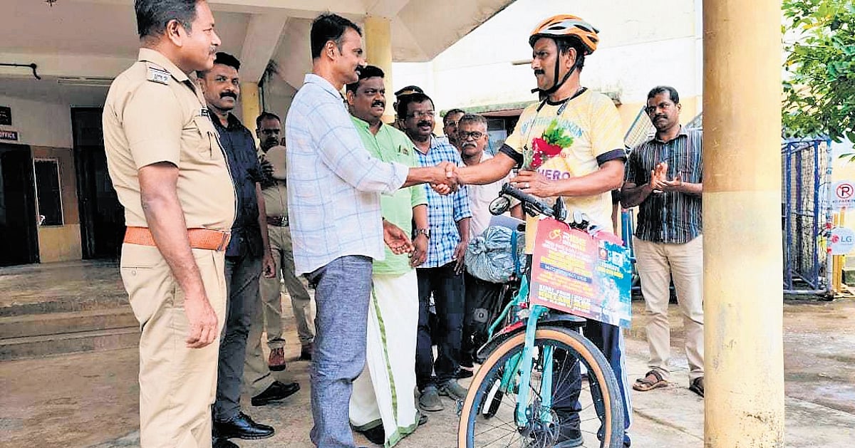 പത്തനംതിട്ടഃ കൊല്ലം വെസ്റ്റ് പോലീസ് സ്റ്റേഷനിൽ നിന്ന് സബ് ഇൻസ്പെക്ടർ ഷാജഹാൻ വിരമിച്ചത് ശാന്തമായ ജീവിതത്തിലേക്കുള്ള പരിവർത്തനത്തെ സൂചിപ്പിക്കുന്നില്ല. പകരം, സംസ്ഥാനത്ത് വർദ്ധിച്ചുവരുന്ന മയക്കുമരുന്ന് ദുരുപയോഗത്തെക്കുറിച്ചുള്ള അവബോധം വളർത്തുക എന്ന ലക്ഷ്യത്തോടെ കേരളത്തിലുടനീളം 2,025 കിലോമീറ്റർ സൈക്ലിംഗ് പര്യവേഷണത്തിന്റെ തുടക്കമായി ഇത് അടയാളപ്പെടുത്തി.