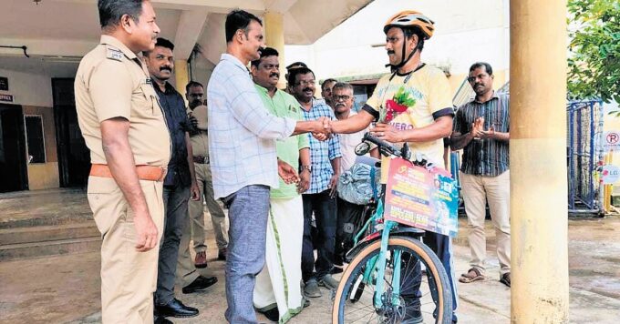 മയക്കുമരുന്ന് ദുരുപയോഗ പ്രശ്നം പരിഹരിക്കുന്നതിനായി സബ് ഇൻസ്പെക്ടർ ഷാജഹാൻ കേരളത്തിലുടനീളം 2,025 കിലോമീറ്റർ സൈക്ലിംഗ് പര്യവേഷണം നടത്തി